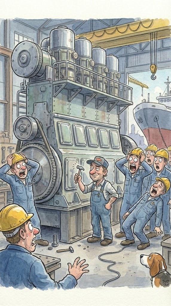 A giant ship's engine broke down and after unsuccessful attempts to repair it, a Mechanical Engineer with 30+ years of experience was hired.