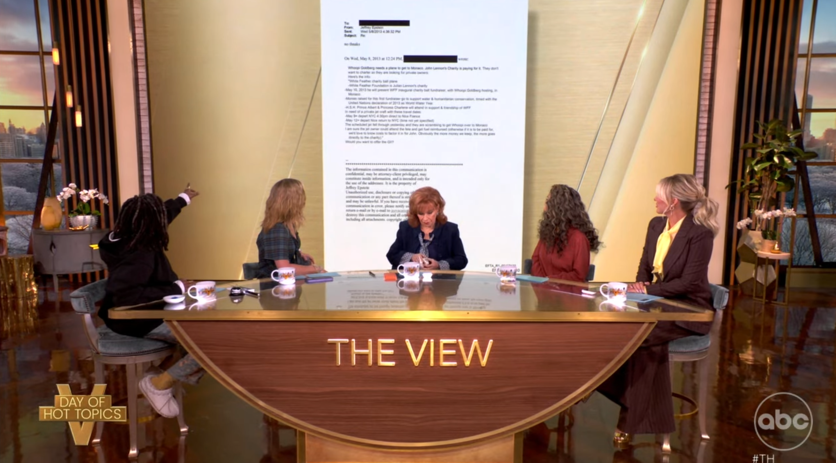 Goldberg’s co-host Joy Behar pointed out that many names are mentioned in Epstein's files, implying anyone could appear on the list. This prompted Goldberg to reiterate that she never had any association with Epstein other than the denied plane request.
