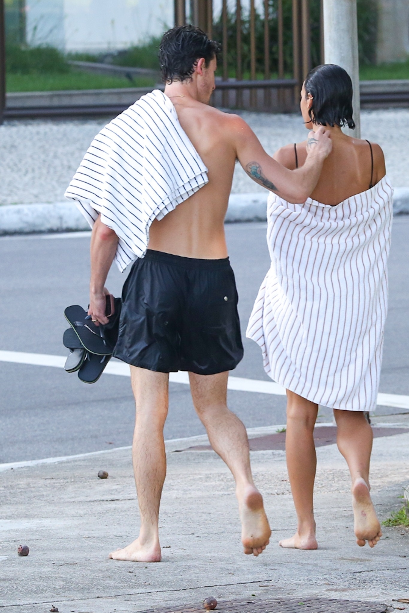 The couple enjoyed time by the ocean, with Mendes wrapping his arms around Marquezine, who wore a black bikini. They shared playful moments and kisses on the beach before swimming and walking back to shore wrapped in towels.
