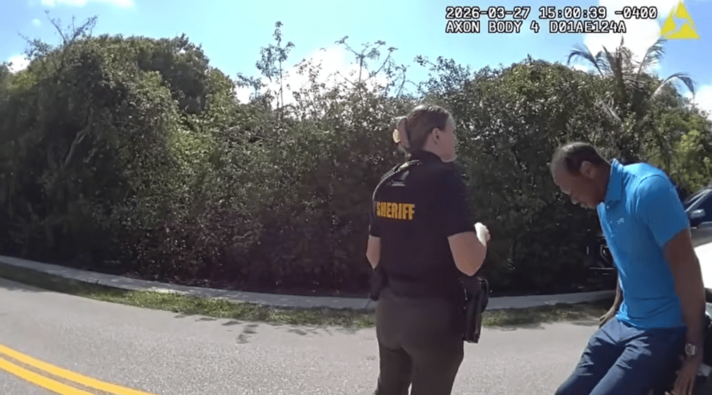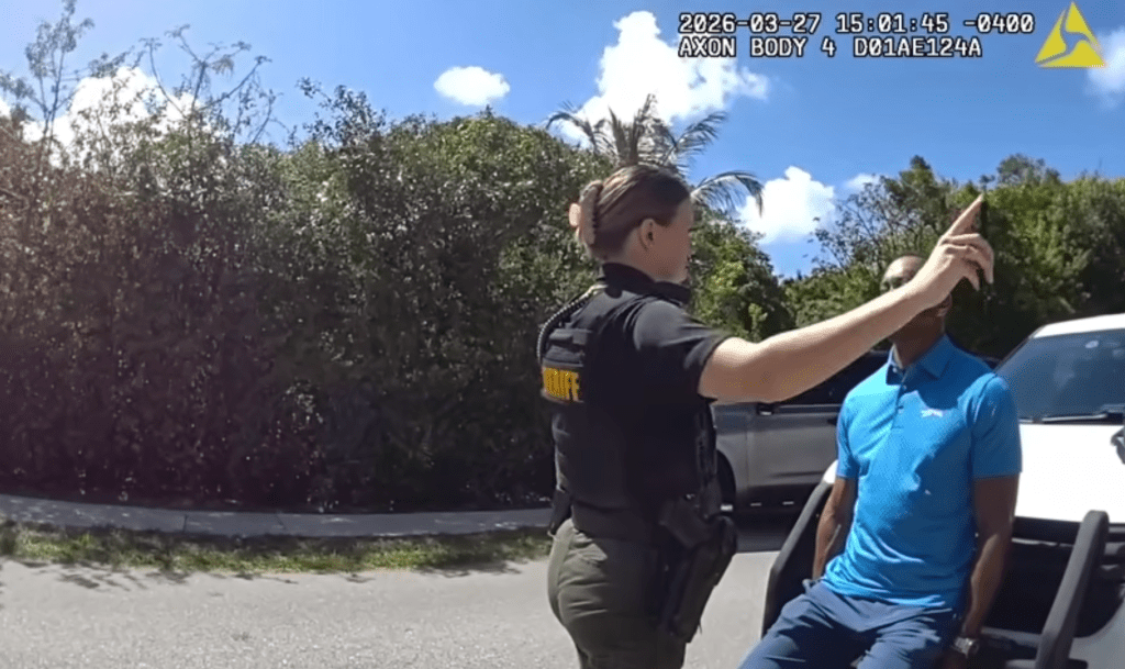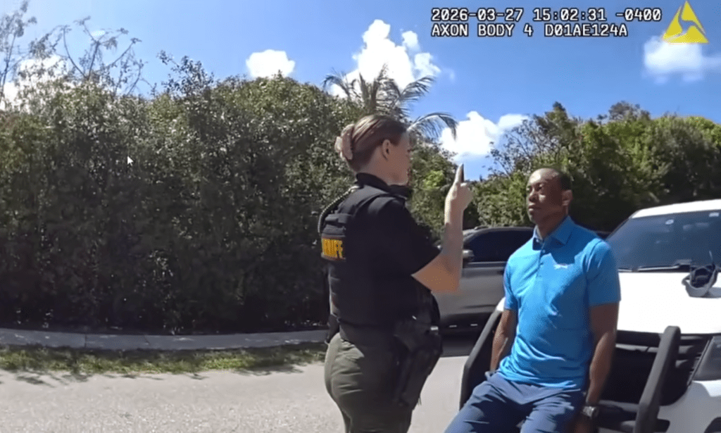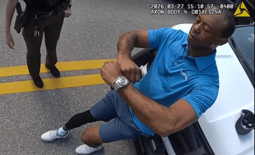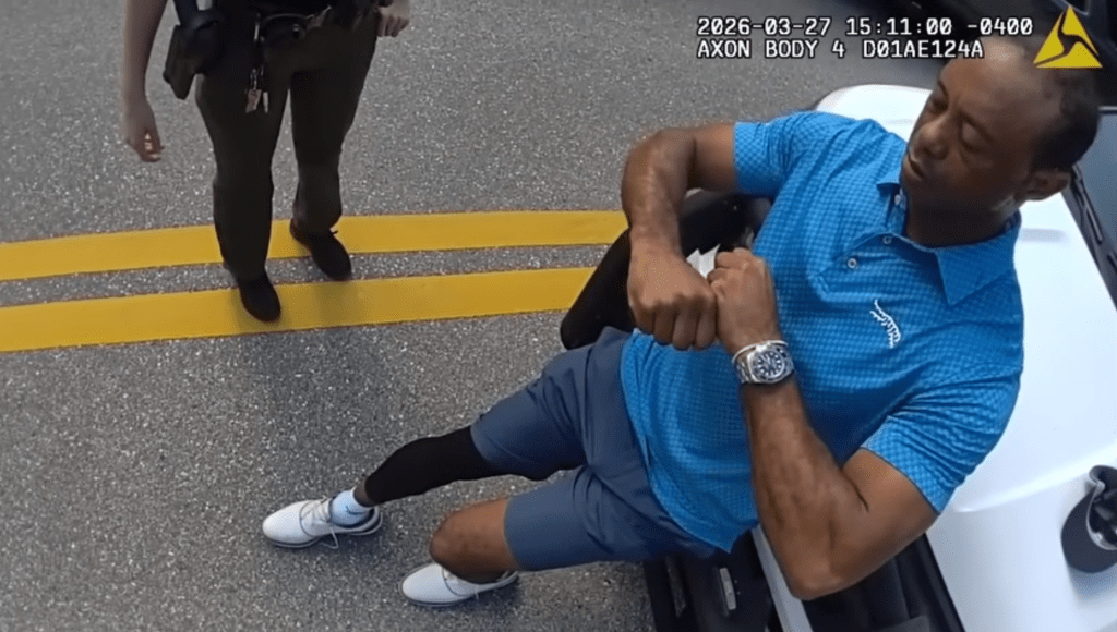 Additional bodycam footage showed Woods at the crash scene, sitting by the road as police checked him for injuries. His car had flipped over after he reportedly got distracted by his phone and radio.