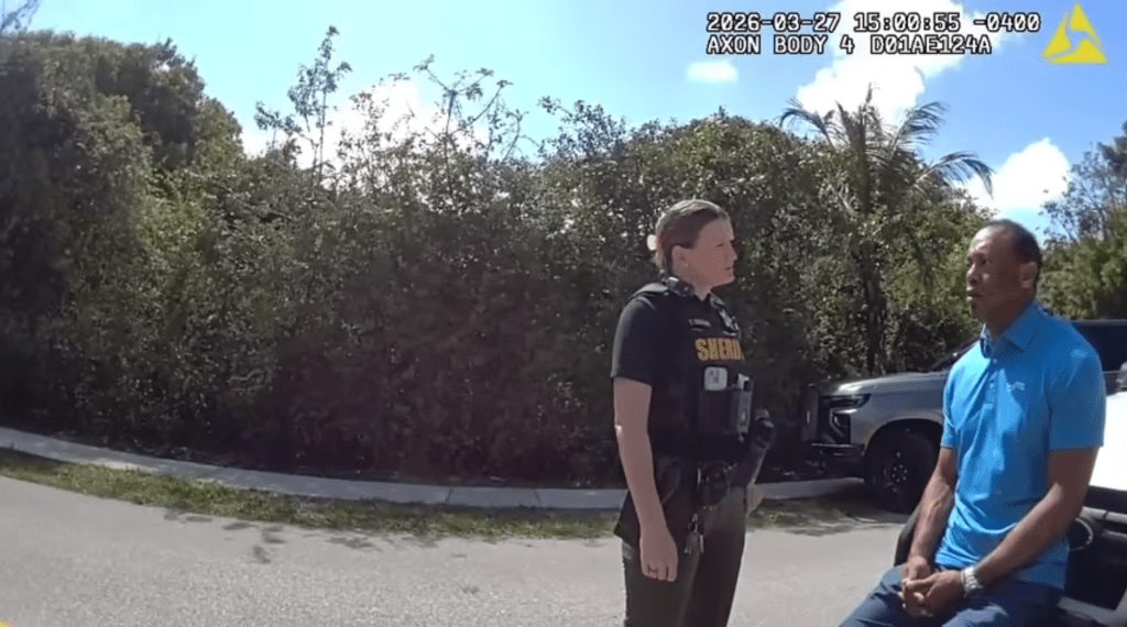 Newly released police videos show Tiger Woods failing a sobriety test and being arrested for DUI in Florida, while dealing with hiccups. The incident occurred after his car crash near his home on March 27.