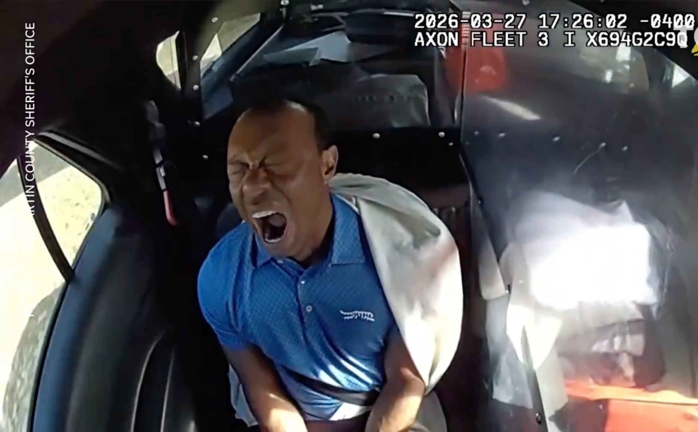 Tiger Woods was involved in a rollover crash and subsequent DUI arrest in Jupiter, Florida. He appeared irritated in bodycam footage as police placed him in a patrol car.