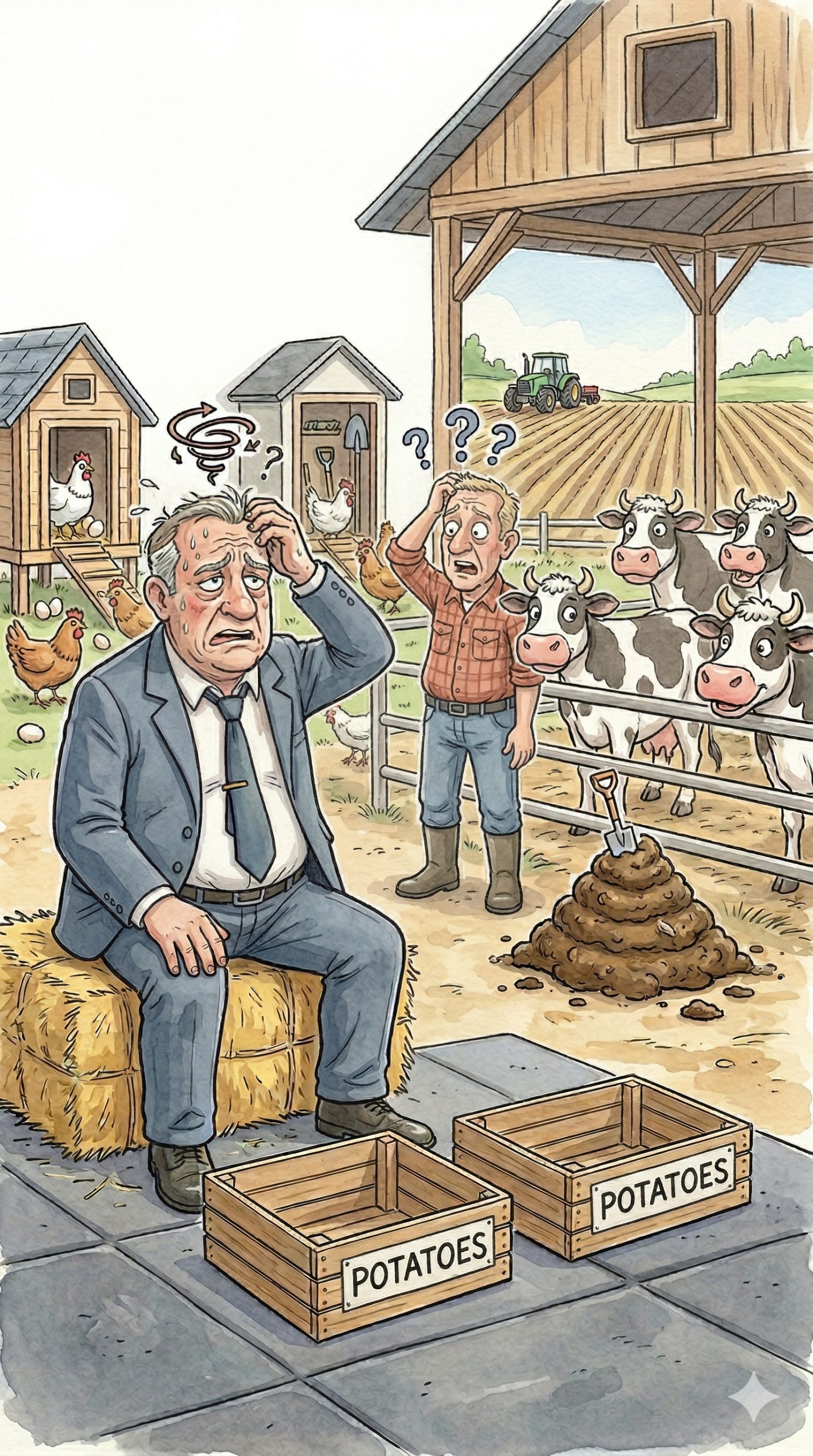 The next morning, the farmer gave him what appeared to be a simple task: sorting potatoes into two boxes based on size. By evening, however, no progress had been made.