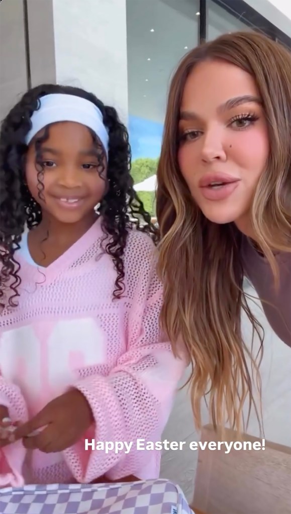 Khloé commented in a video about pre-Easter activities involving her daughter True and mentioned her son Tatum making slime. She expressed how much fun she was having during the celebration.