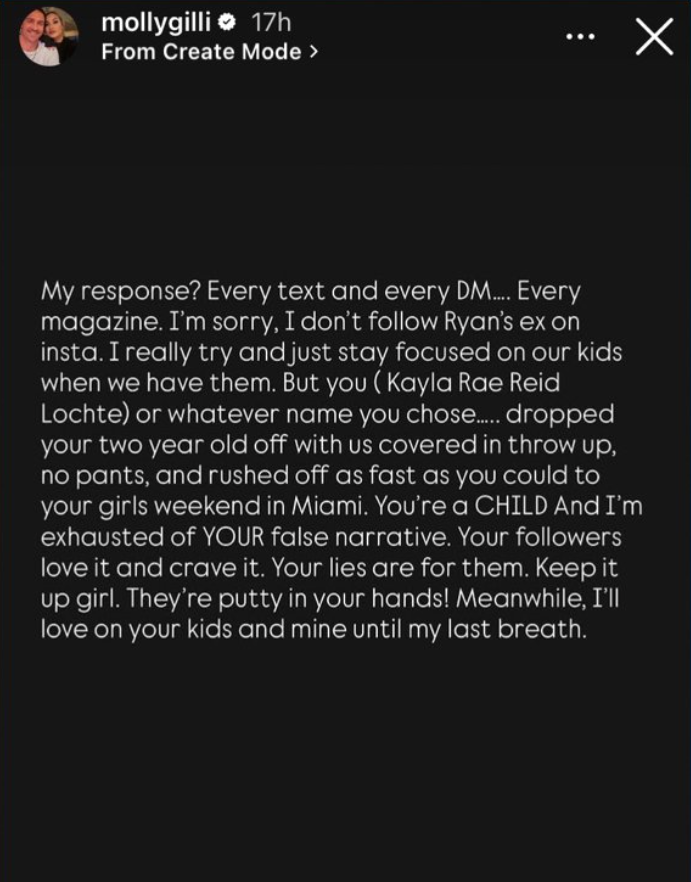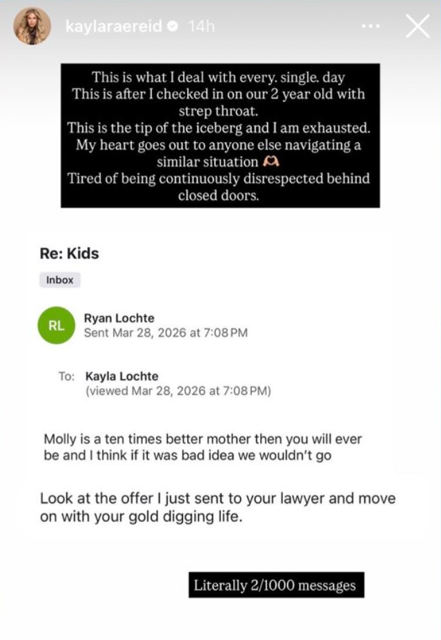Reid, who shares three children with Lochte, shared an alleged email from him where he praised Gillihan as a better mother. Her post expressed fatigue over constant disrespect.